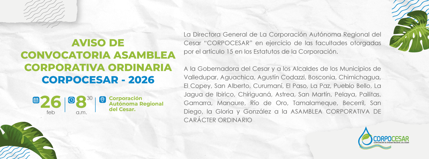 La Directora General de la Corporaciön Autonoma Regional del Cesar — CORPOCESAR, en