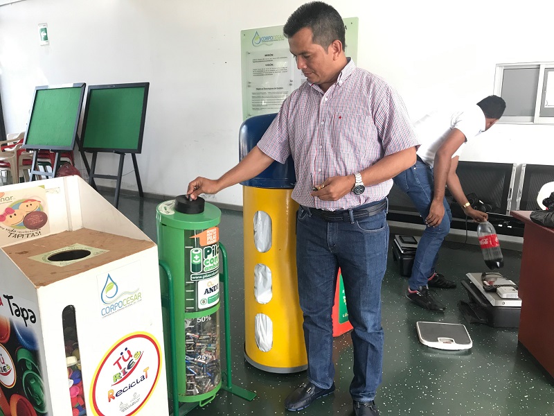 Por su parte, el subdirector general del Área Ambiental de Corpocesar, Ingeniero Antonio Rudas Muñoz dijo: “la idea es que podamos llenar los contenidos de residuos Posconsumo que tenemos aquí en el primer piso de la sede y que a través de esta actividad se evite que estos objetos terminen en los ecosistemas naturales contaminando el ambiente”.