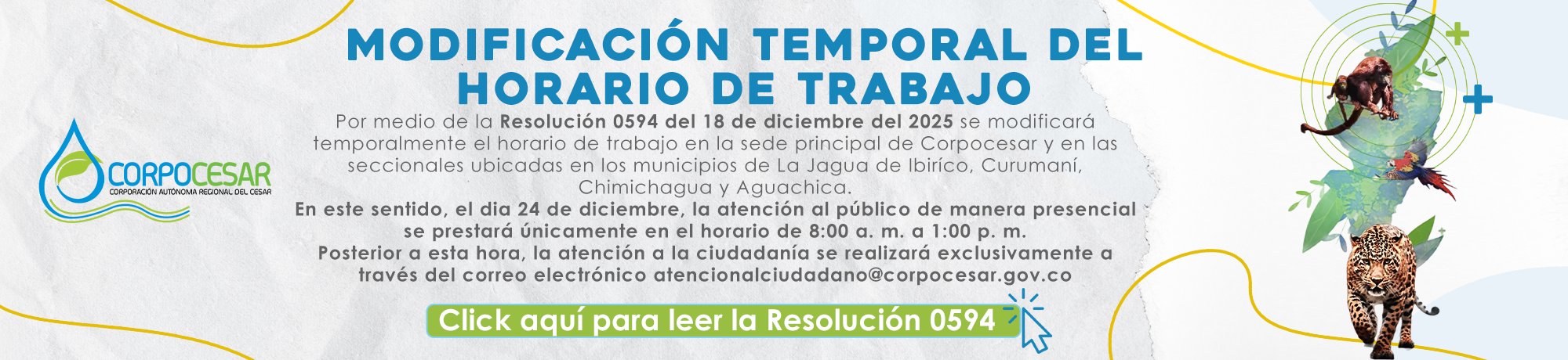 POR MEDIO DE LA CUAL SE MODIFICA TEMPORALMENTE EL HORARIO DE TRABAJO DE LA CORPORACIÓN AUTONOMA REGIONAL DEL CESAR - CORPOCESAR Y SE TOMAN OTRAS DETERMINACIONES